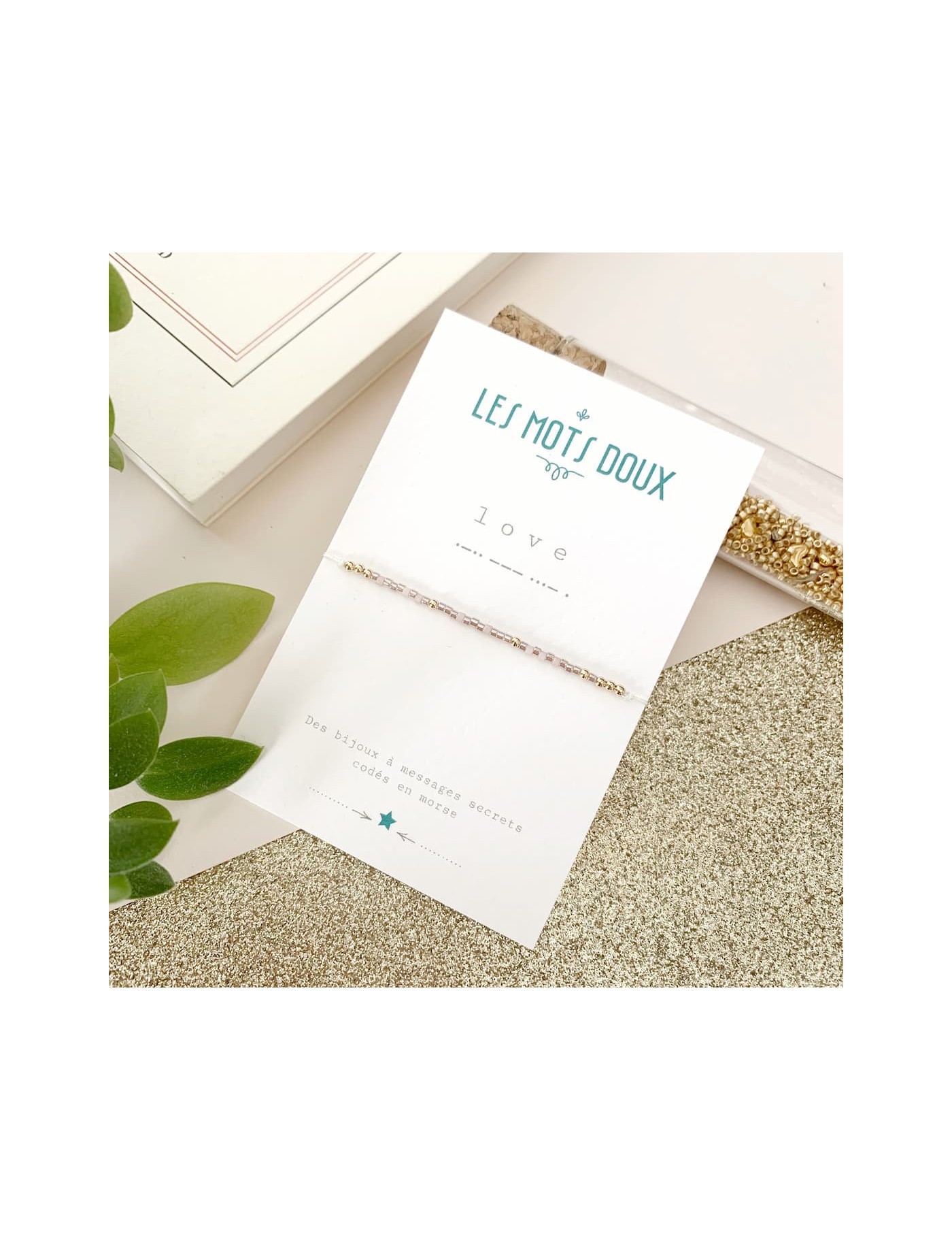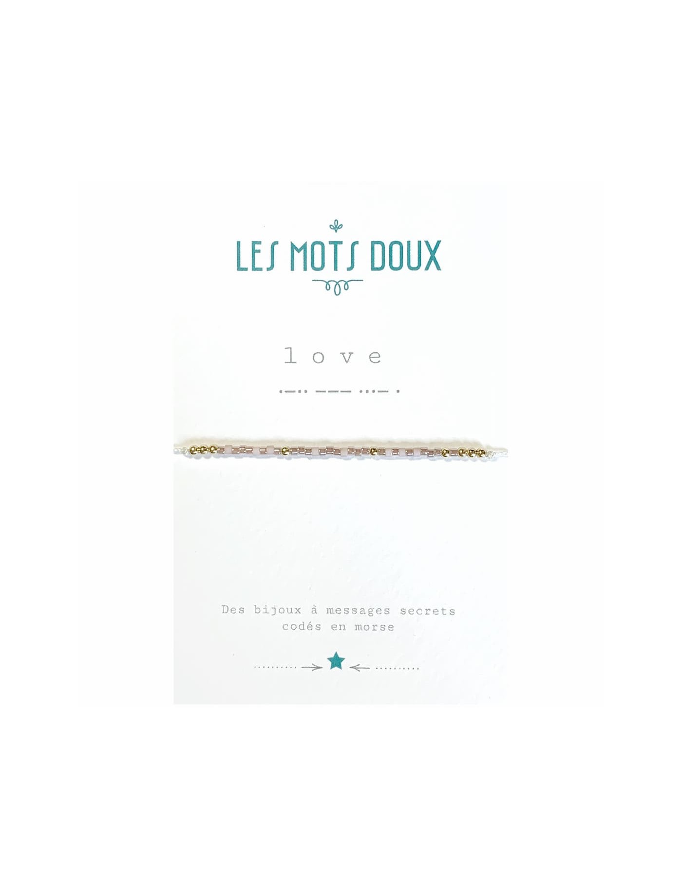 Imaginez un bracelet dont vous seriez le (la) seul(e) à en connaître le message... Les mots doux a imaginé un bracelet à message secret, codé en morse. Ici, le message est LOVE. Les perles fine reprennent le code de l'alphabet morse. Les perles sont de couleur dorée, et rose pâle.