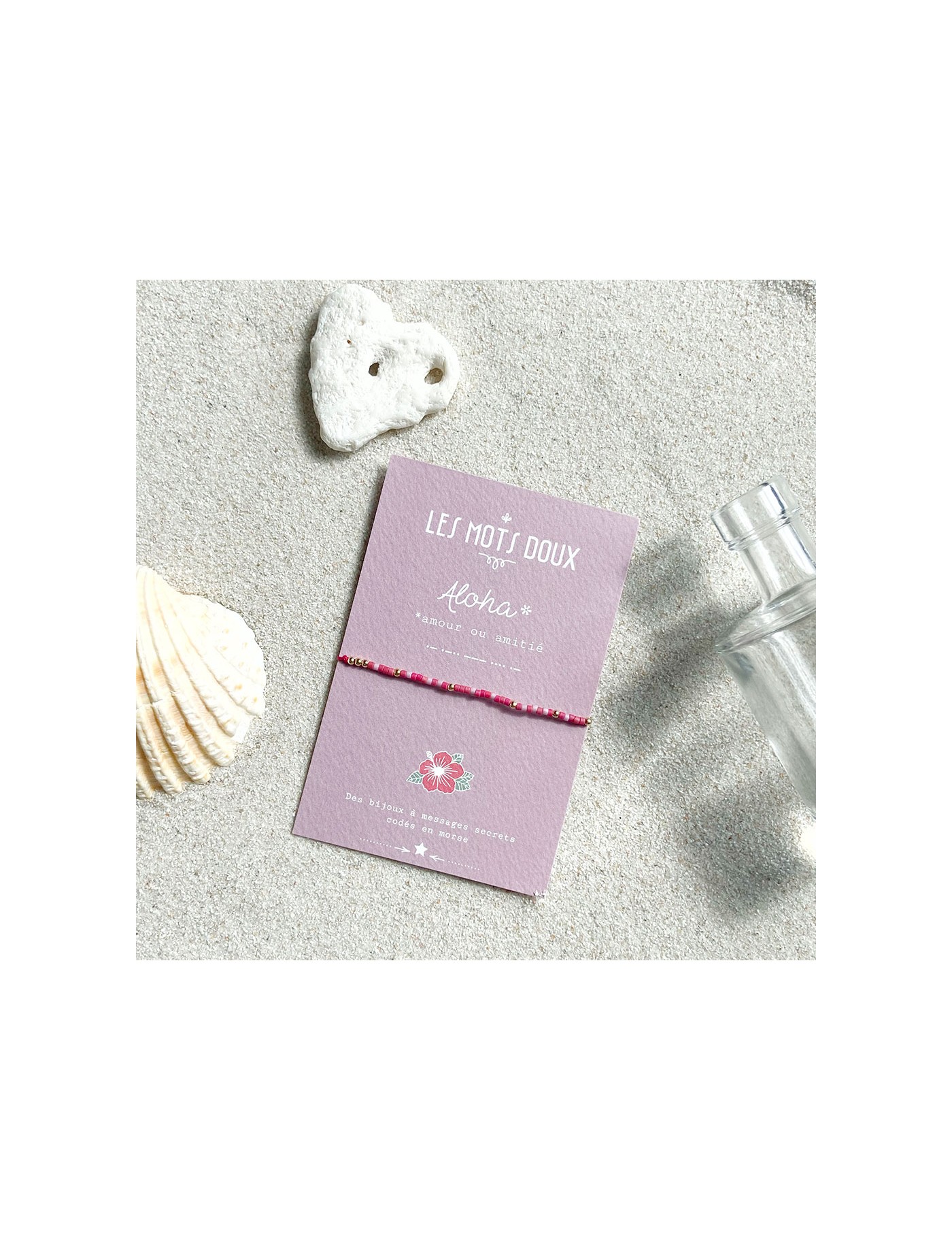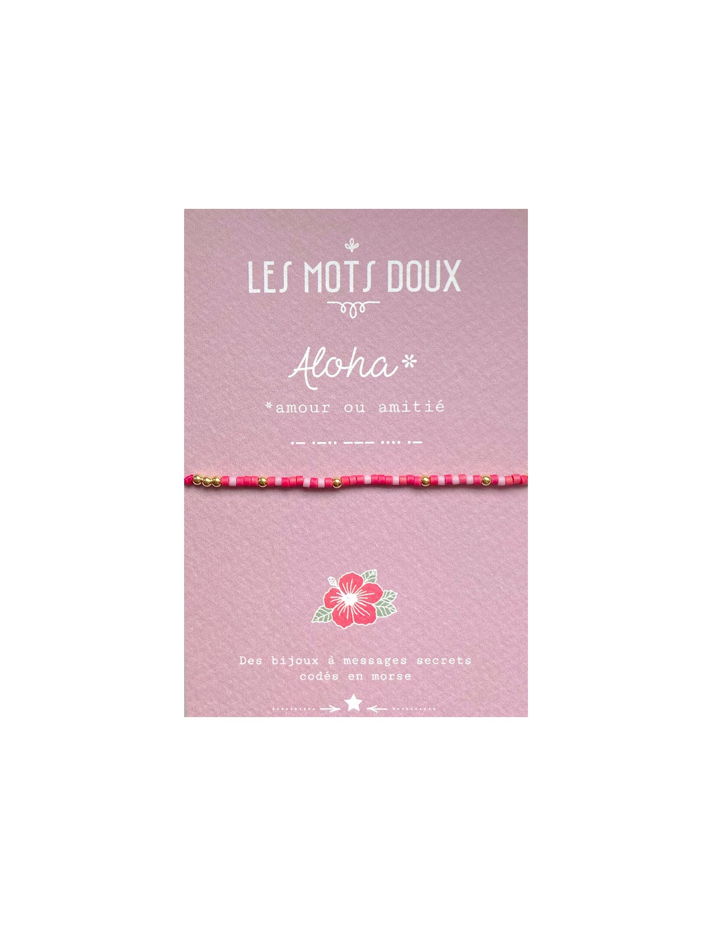 "Aloha" signifie "amour" ou "amitié" en hawaïen. Partagez de l'amour avec ce beau bracelet en perles, codé en morse. Il est fabriqué en France.