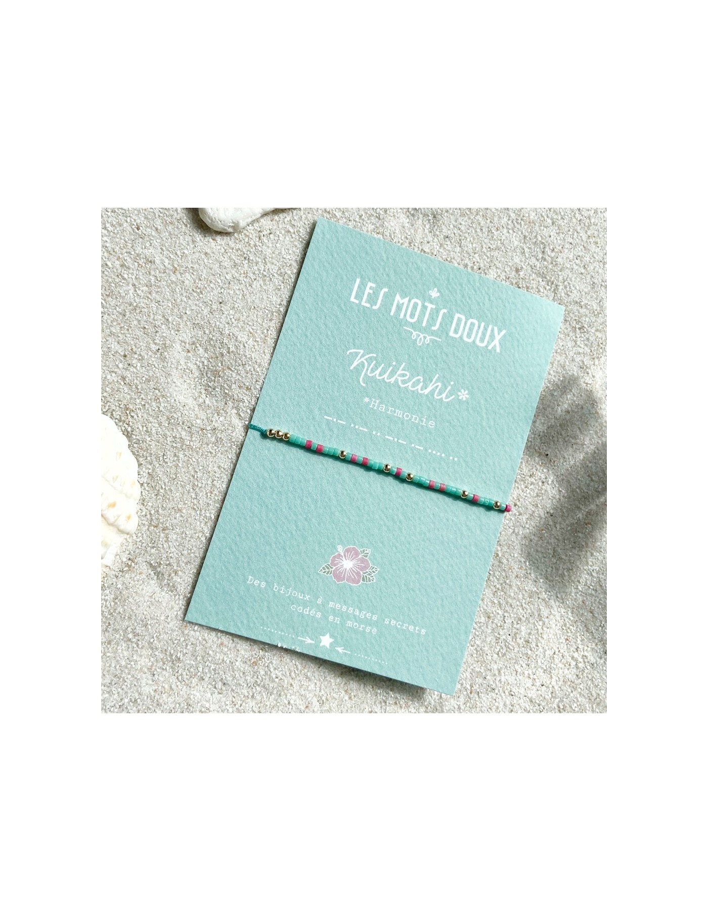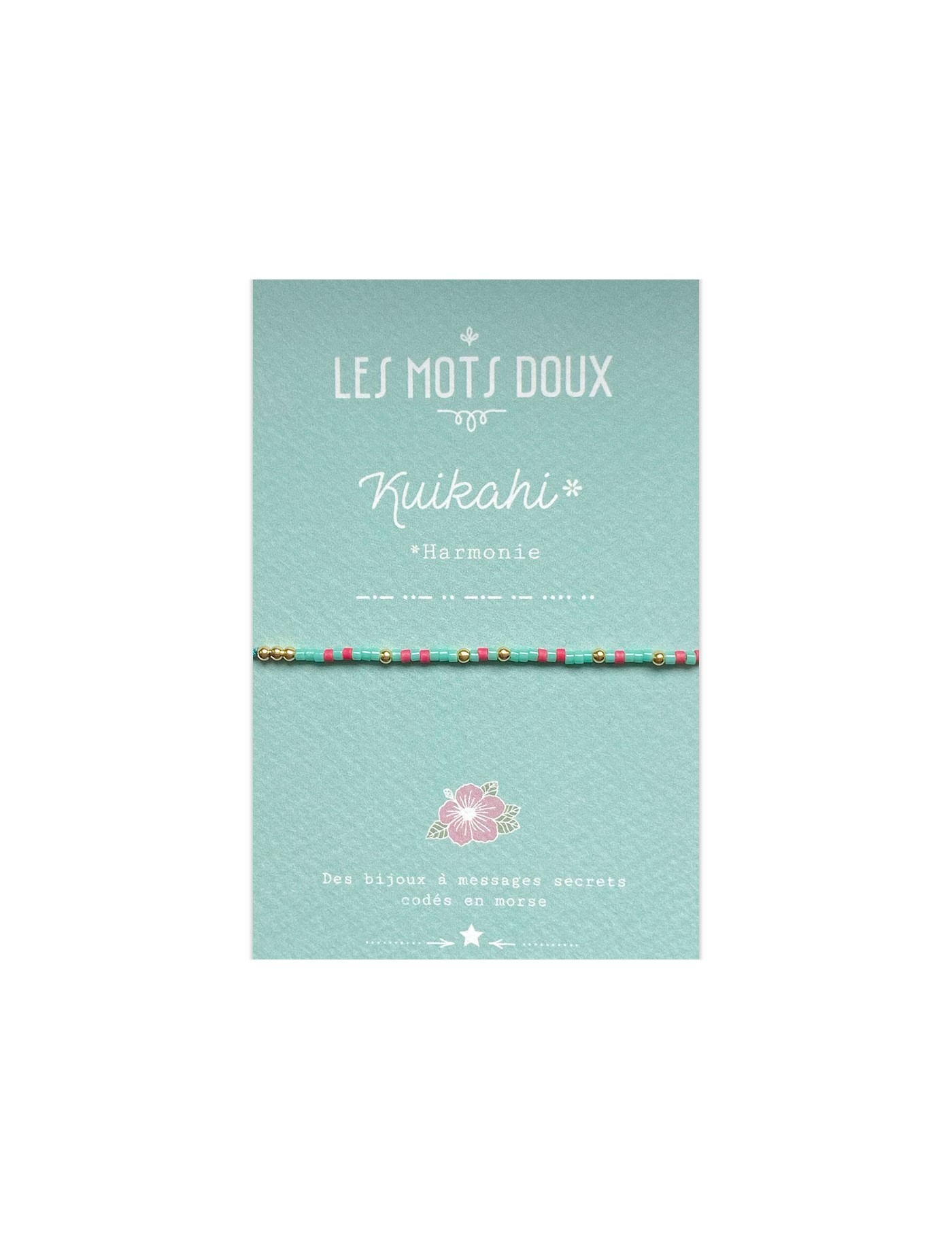 "Kuikahi" signifie "harmonie" en hawaïen, de quoi être zen toute la journée. Les perles reprennent le code de l'alphabet morse. Il est fabriqué en France.