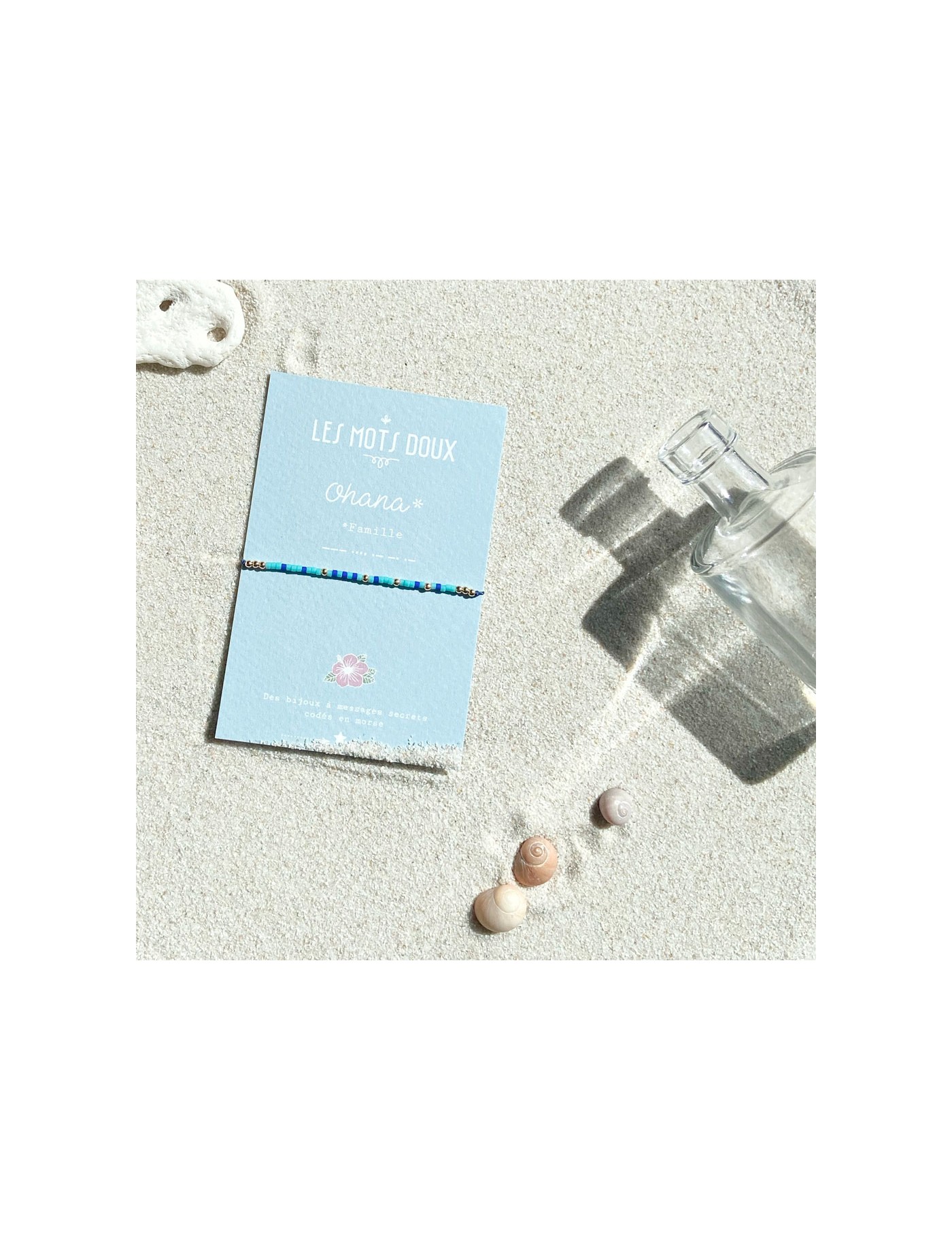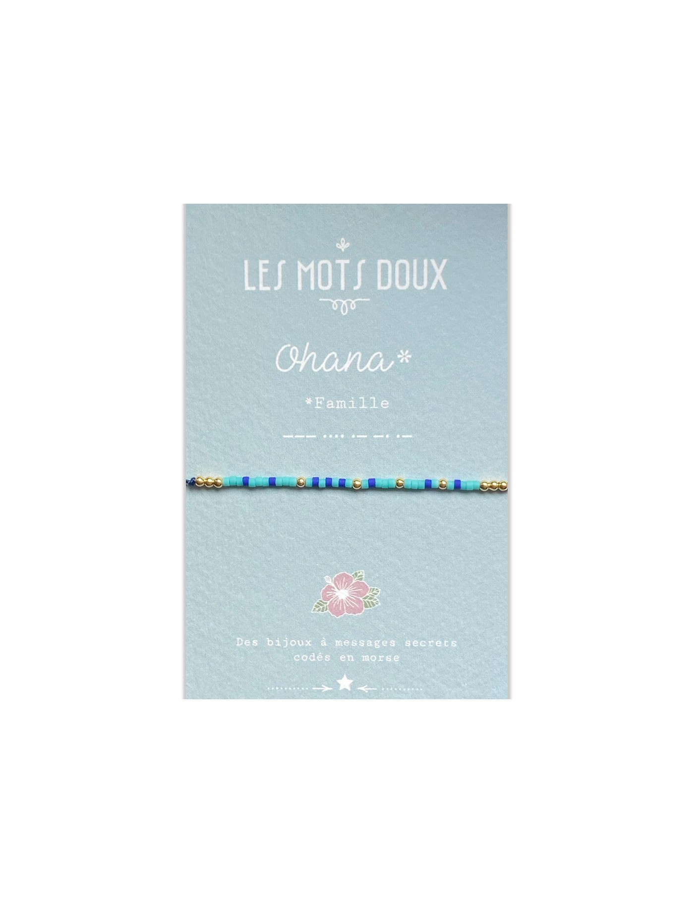 "Ohana" signifie "harmonie" en hawaïen, de quoi être zen toute la journée. Les perles reprennent le code de l'alphabet morse. Il est fabriqué en France.