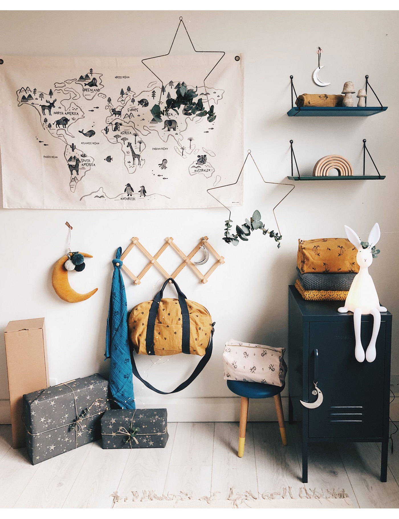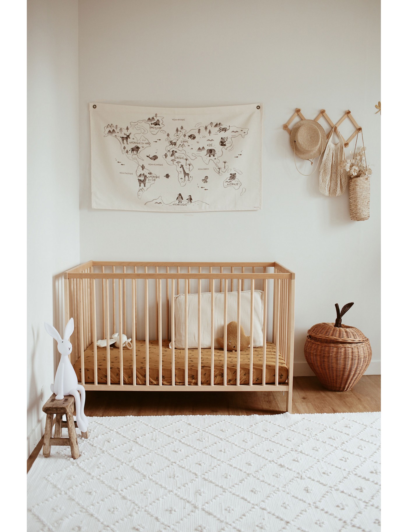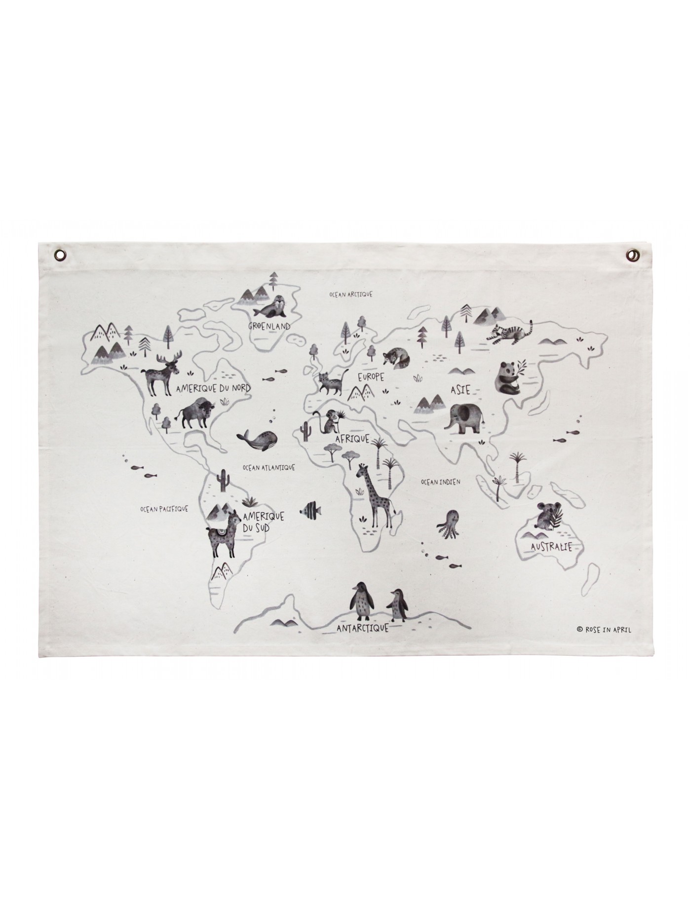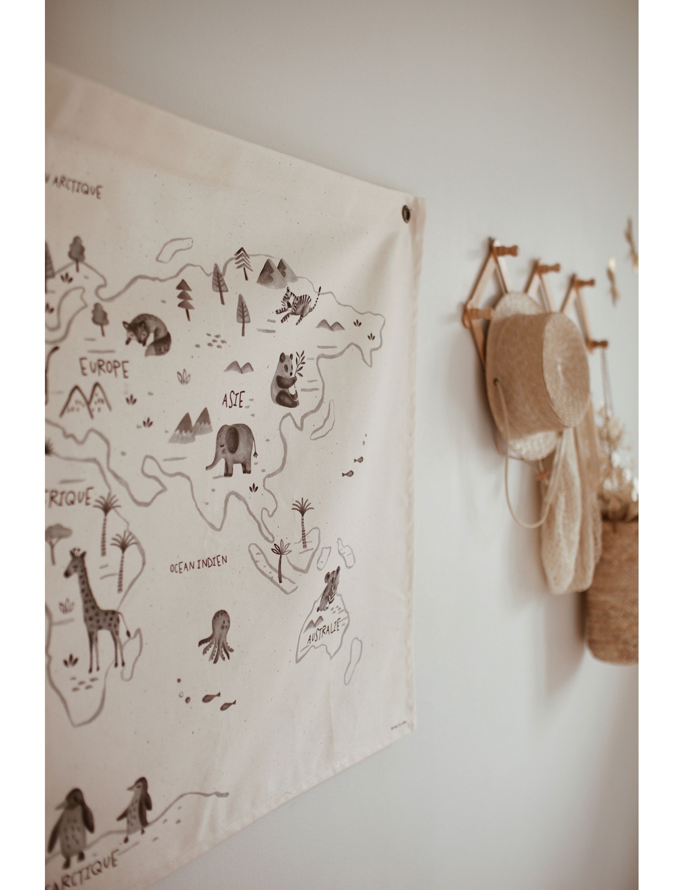 Incontournable déco de la chambre de votre enfant, cette carte du monde imaginée par Eugénie créatrice de la marque Rose in April. Elle fera rêver les petits aventuriers, et plaiera aux parents grâce à son design un brin rétro. Elle se fixe facilement grâce aux deux oeillets métalliques.